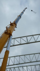 Nach unserer Ankunft auf der Baustelle fanden wir einen nahezu vollständig ausgefahrenen Mobilkran Liebherr LTM 1200-5.1 vor.